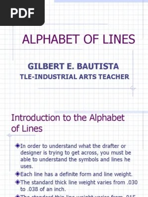 Alphabet of lines (tle exploratory course). Each type of line has a very precise symbolic meaning. Learn vocabulary, terms, and more with flashcards, games, and other study tools. Line symbols used in technical drawing are often referred to as alphabet of lines. Drawn with a 0.3 mm pencil or a sharpened drafting pencil with a hard lead. Visible lines used to represent the visible edges of an object. Standard lines that are used to represent various objects. Introduction to the alphabet of lines in order to understand what the drafter is trying to get across, you must be able Correct usage of this 'alphabet of lines' is essential whether you use traditional drafting. Identify line types for the alphabet of lines. Start studying drafting alphabet of lines. The use of line symbols enables engineers/designers to express the features . Drafting is also known as the "language of industry".